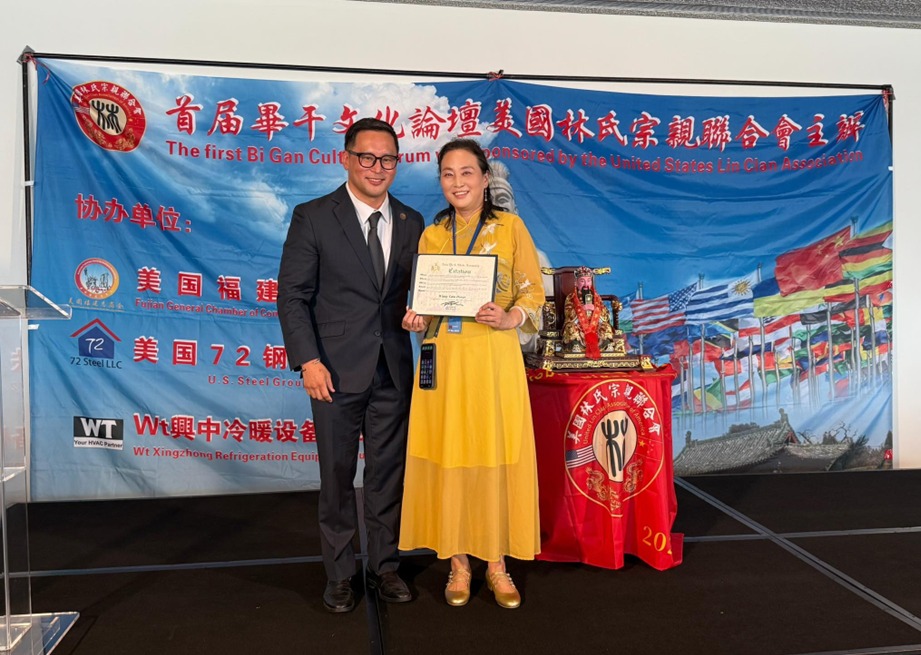 嘉奖由纽约州众议员金兑锡(Ron Kim)亲自颁发,以表彰林泳莉女士作为联合国NGO代表及妈祖文化推广者,在促进中美文化交流、推动社会包容与文明互鉴方面的卓越成就。金议员在颁奖致辞中表示:“林泳莉女士不仅是中华传统文化的传播者,更是连接不同文明的桥梁。她以实际行动诠释忠义与仁爱精神,为纽约多元文化社区树立了典范。”