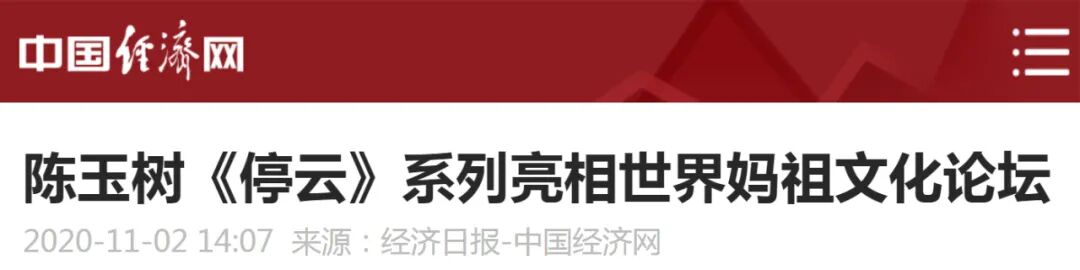 四君子艺术中心主席陈玉树潜心传统文化研究多年,艺术造诣深厚,面对媒体侃侃而谈,他说“陶潜《停云》诗:‘霭霭停云,蒙蒙时雨。’停云者,风雅,清雅,守朴,本心。”他表示,“停云”是每个人心田的一片桃花林,生命的暗夜里,漫步其间,心总能静下来,去感受“月照花林皆似霰”的静美。人有净气,风雅自来。他希望自己的这个系列作品能够唤醒现代人对中国传统儒家文化的传承和敬意,呼吁疫情当下人类社会应该对:“立德、行善、大爱”的妈祖精神内涵的重视与深思。