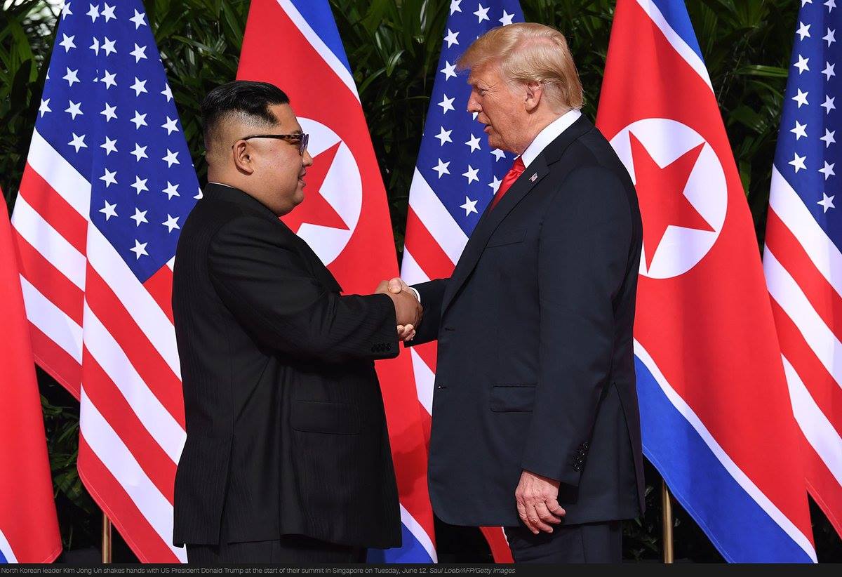 据悉,当地时间12日上午,朝鲜最高领导人金正恩与美国总统特朗普在新加坡嘉佩乐酒店举行首次会晤,双方握手致意。这是在任的朝美领导人数十年来首次会晤及握手。