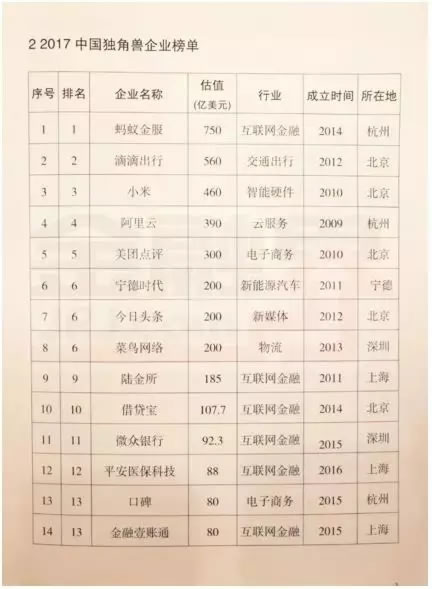 先看一组由科技部公布的2017年中国独角兽企业榜单,从榜单中估值排名前10且估值都在100亿美元以上的企业中可以发现,他们基本都是近几年顺应时代的发展,站在风口上,获得风险投资的互联网、科技、金融相关的企业,且当地政府对这些企业给予相关的政策扶持。